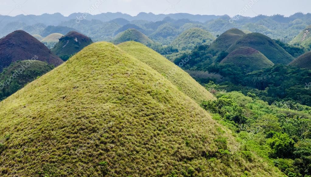 Hills are spread over 50 square kilometers with green grass. Proposals to include the chocolate hills in the unesco world heritage site list are currently being conducted. In another version, a pair of giants went to war and lobbed boulders at each other for days. The chocolate hills were featured in the philippine tourism authority's list of philippine tourist destinations and are the philippines' third national geological monument. Chocolate hills are a bizarre and popular attraction in the middle of the island of bohol in the philippines.